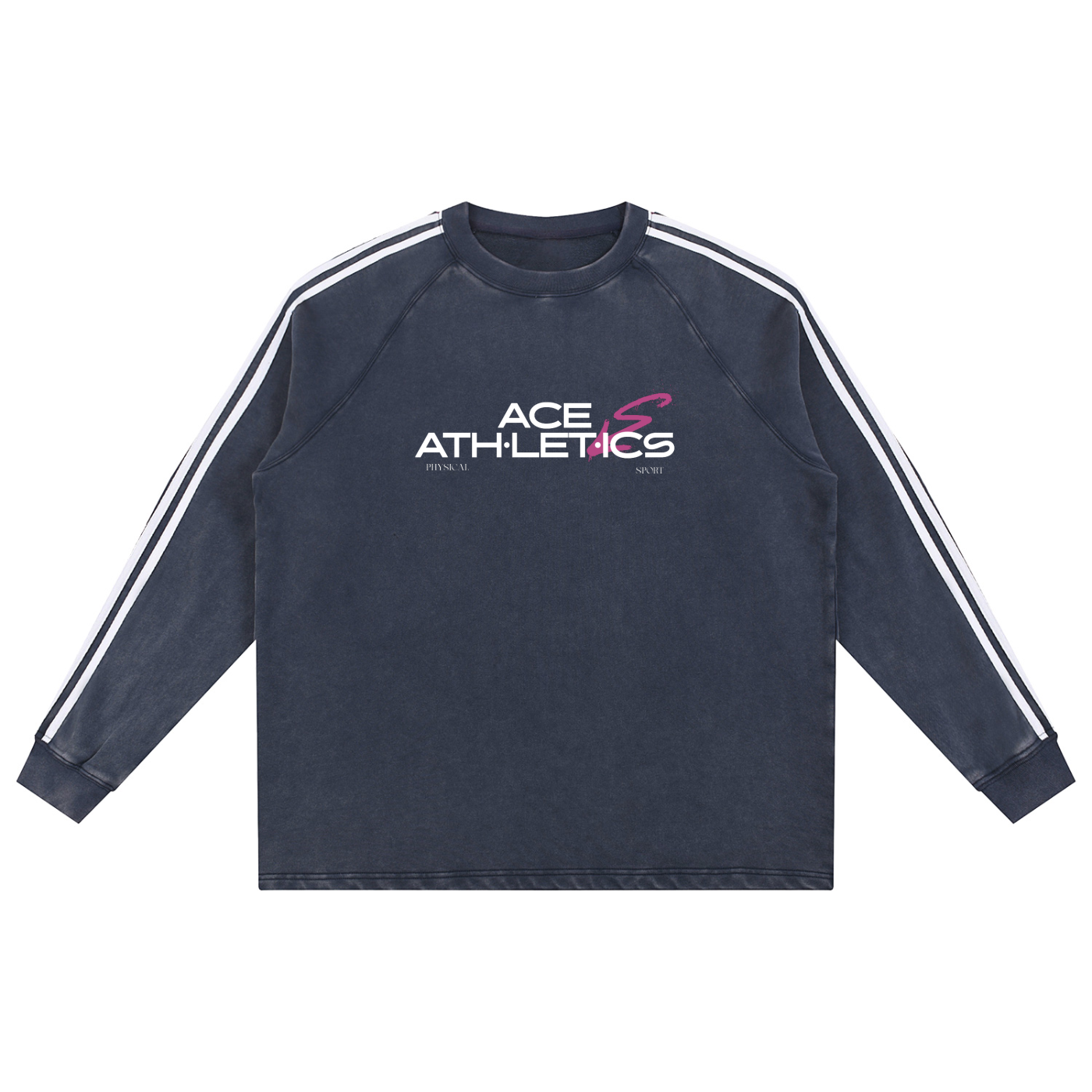 These straight-leg sweatpants feature a “…a tribe called lifestyle” graphic on the front, “ace signatures” embroidery on the back pocket, and all-over scattered stars. They have a comfortable drawstring waist and are available in Apricot, Black, and a Grey version with contrast side stripes.